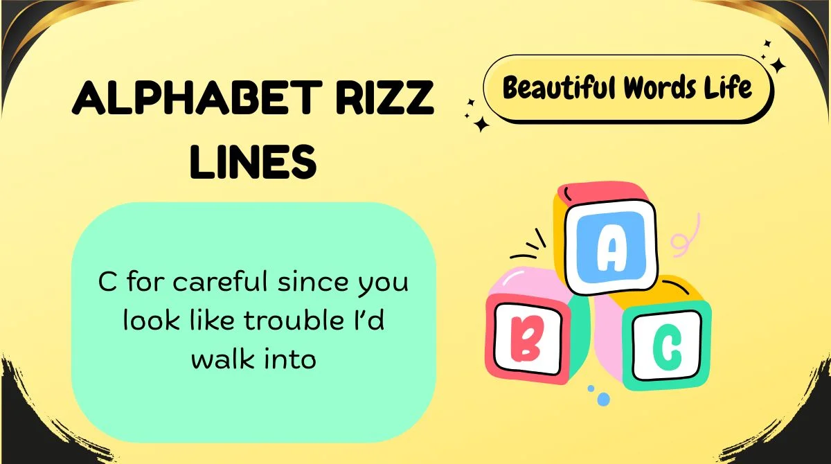 So grab your iced coffee, stretch your thumbs, and letās get into these Alphabet Rizz Lines that are way too smooth for your own good.