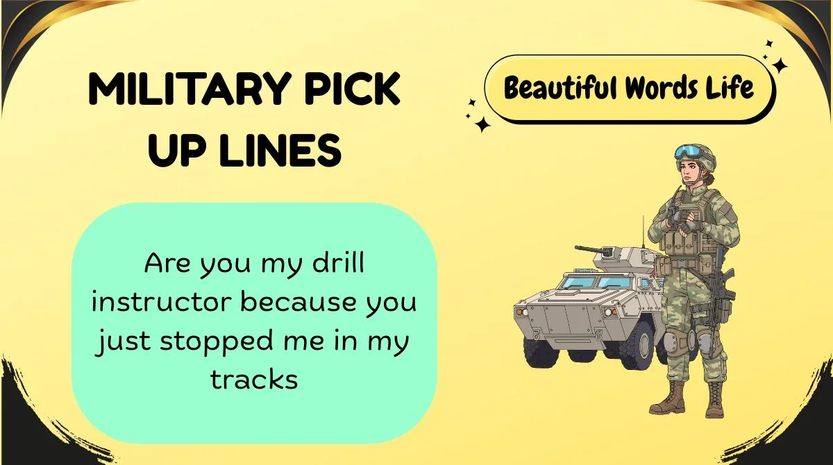 Military pick up lines have that mix of discipline and charm that just works. Clean, bold, a little playful.